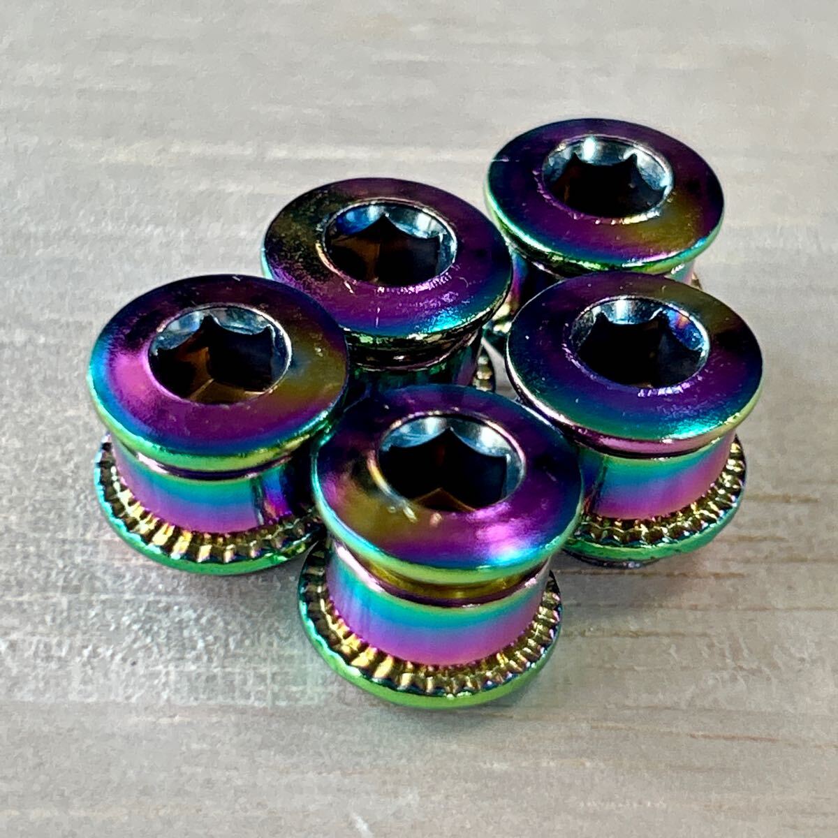 - チェーンリングボルト シングル 5個セット オイルスリックカラー【送料無料】
