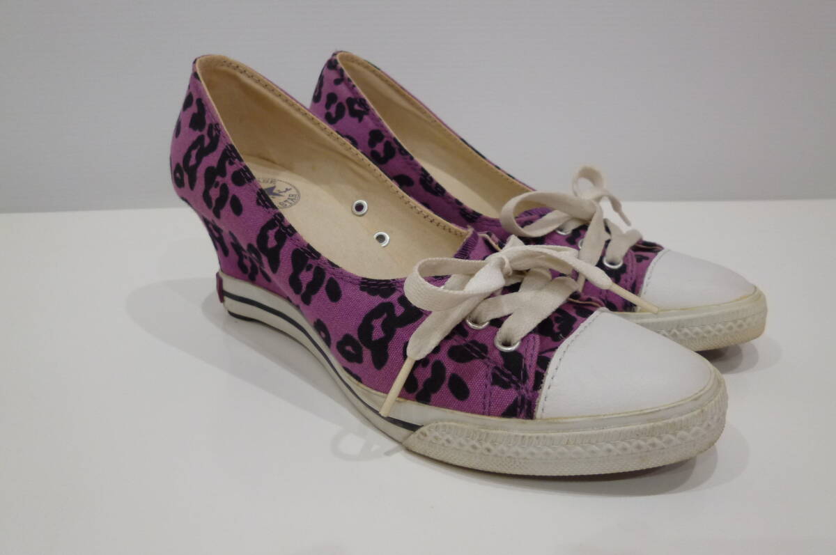 > 希少!CONVERSE コンバース All Star WEDGE II ハイヒールスニーカー 紫レオバード柄 ヒョウ柄 豹柄