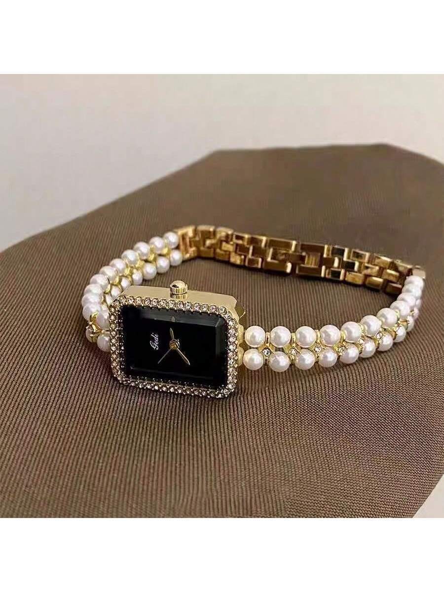 - 腕時計 レディース クォーツ 1個 白いシンプルな人工真珠のブレスレット付き女性用腕時計、ファッションラインストーン正方形ダイヤル