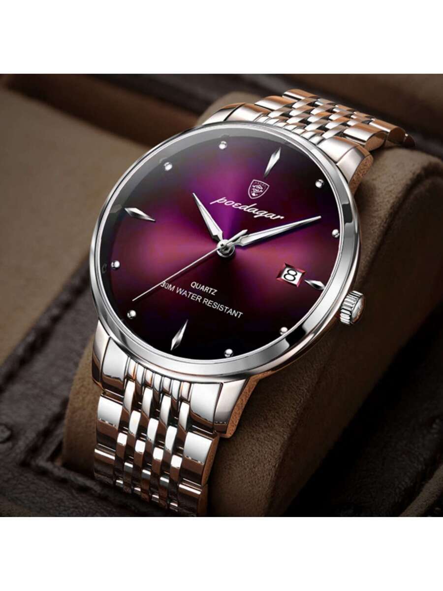 - 腕時計 メンズ クォーツ 高級紫色メンズ腕時計ギフト 本物ブランド 50m防水 ルミナス シンプルダイヤル パーソナライズカラー