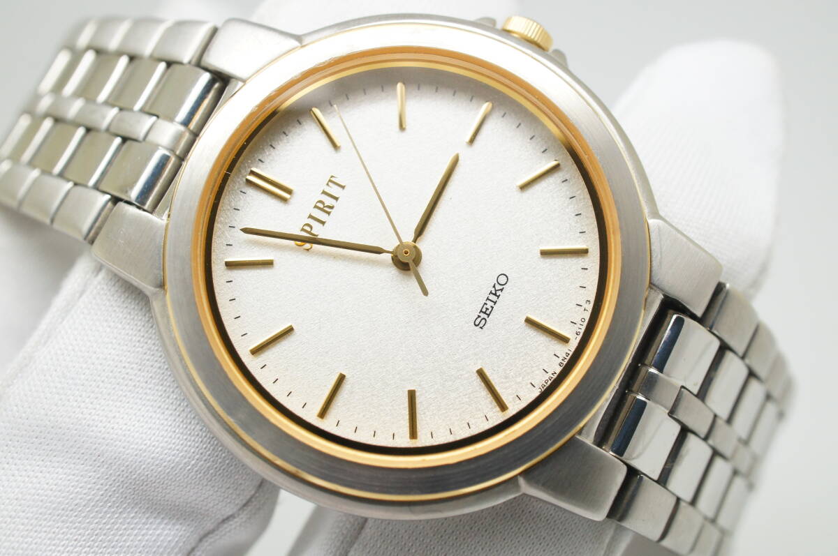 > G101●作動良好 SEIKO セイコー SPIRIT スピリット 8N41-6080 ラウンドケース型 メンズ腕時計 コンビ お洒落 クォーツ
