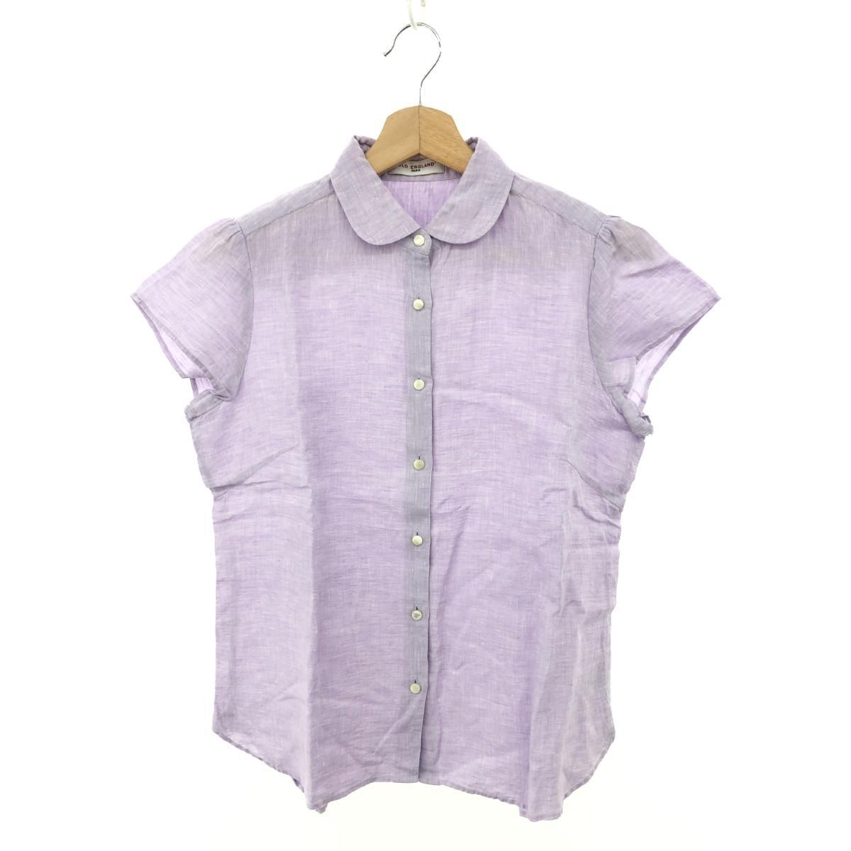 - 美品◆OLDENGLAND オールドイングランド ブラウス 丸襟 半袖リネンシャツ サイズ:38◆ パープル 麻100% レディース トップス