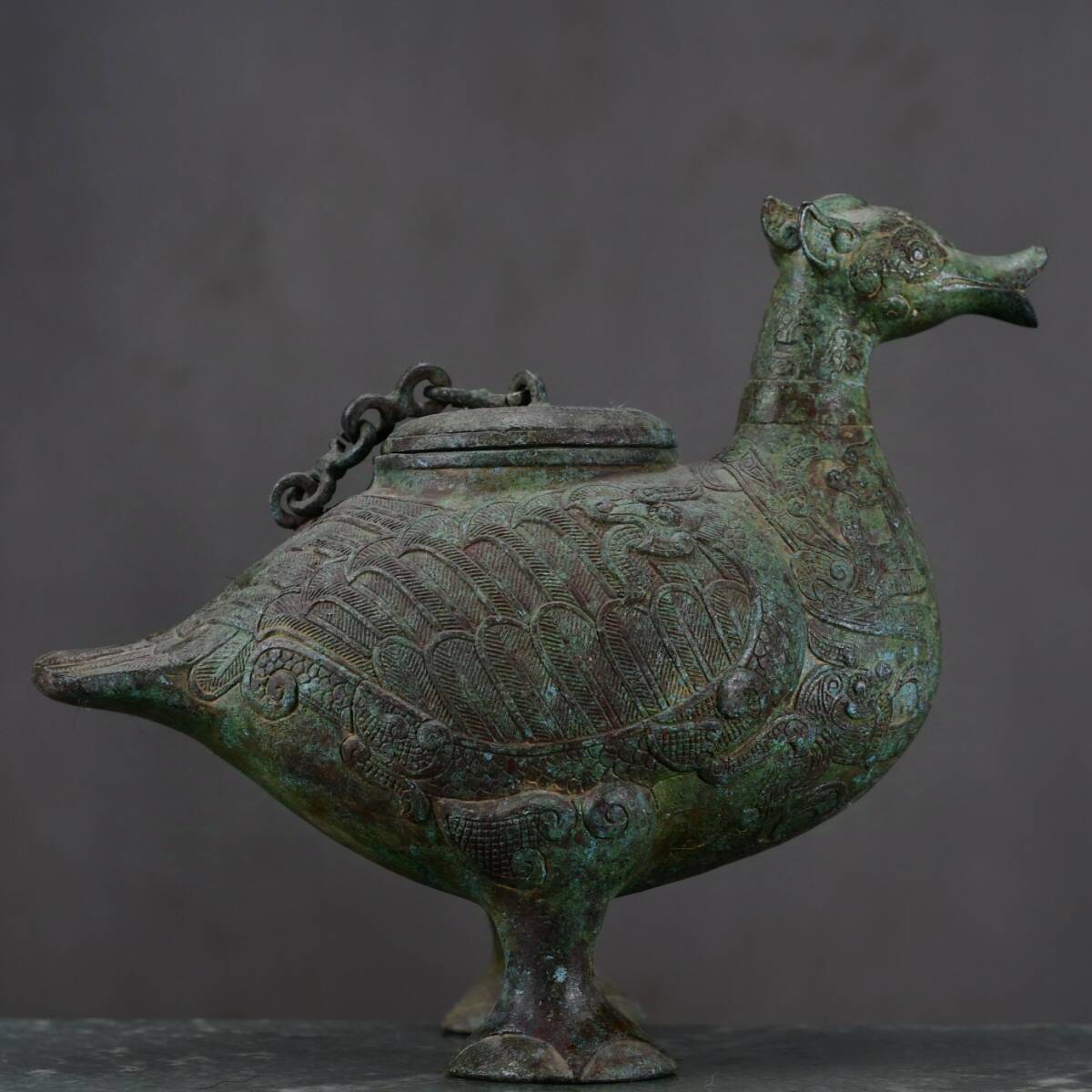 - ▽鴻▽ 漢 青銅製 鴨尊 青銅器 置物 賞物 古賞物 古董品 時代物 稀少珍品 中国古玩 中国古美術