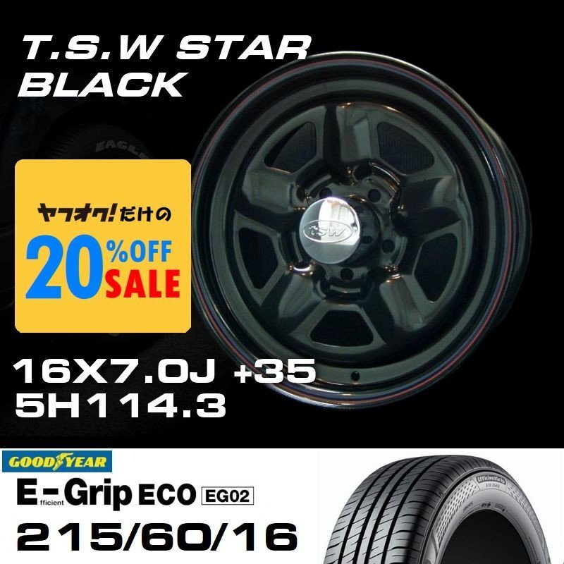 > 特価 TSW STAR ブラック 16X7J+35 5穴114.3 GOODYEAR E-GRIP 215/60R16 ホイールタイヤ4本セット (ハイエース/ハイラックス)
