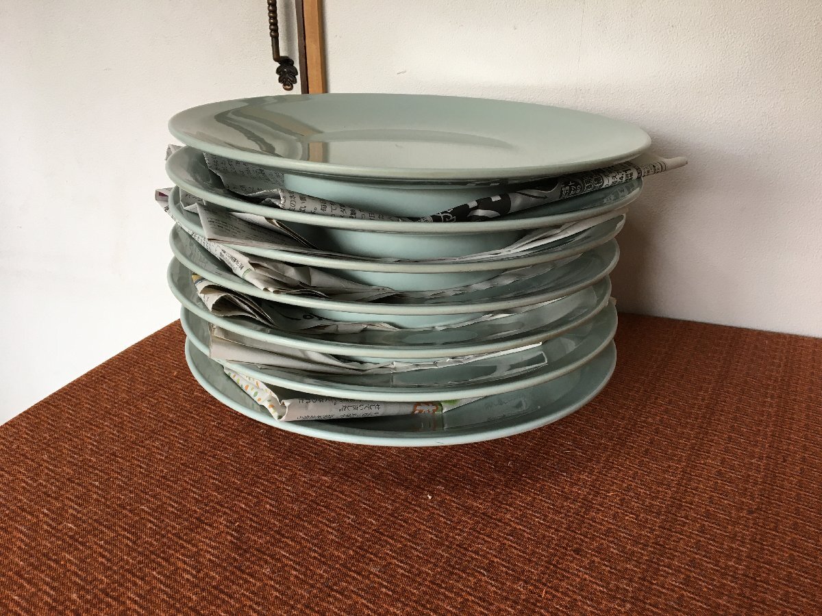 - ③7枚 中華 食器 中華皿 31×31㎝ 大皿 器 青磁 未使用品 昭和 三洋化学工業所 日本製 140℃ 業務用 店舗 ネーム入り
