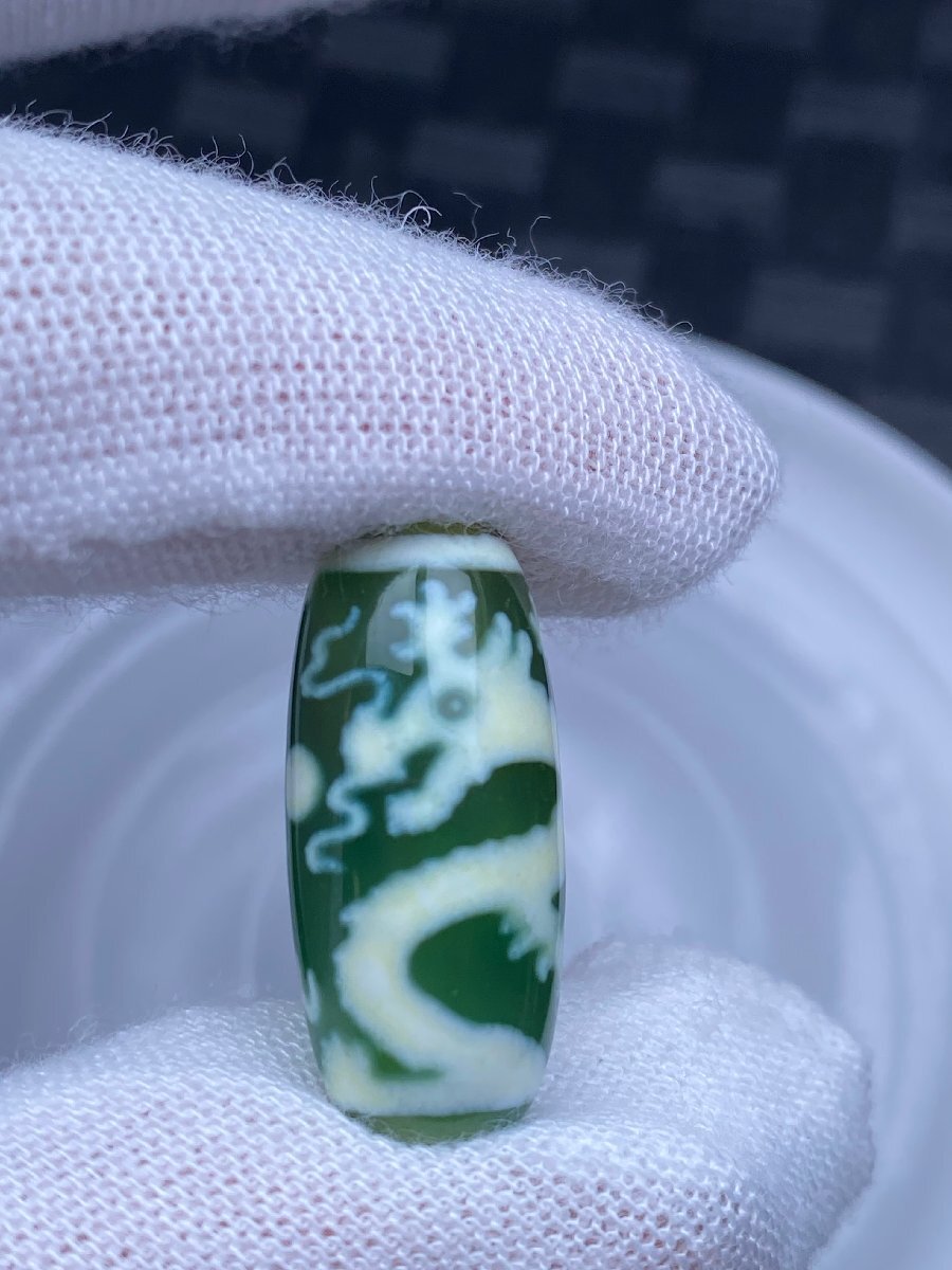 - 即決 0602h288 新入荷★【チベット緑玉髄龍神天珠】★ 25x11.3mm(新品)