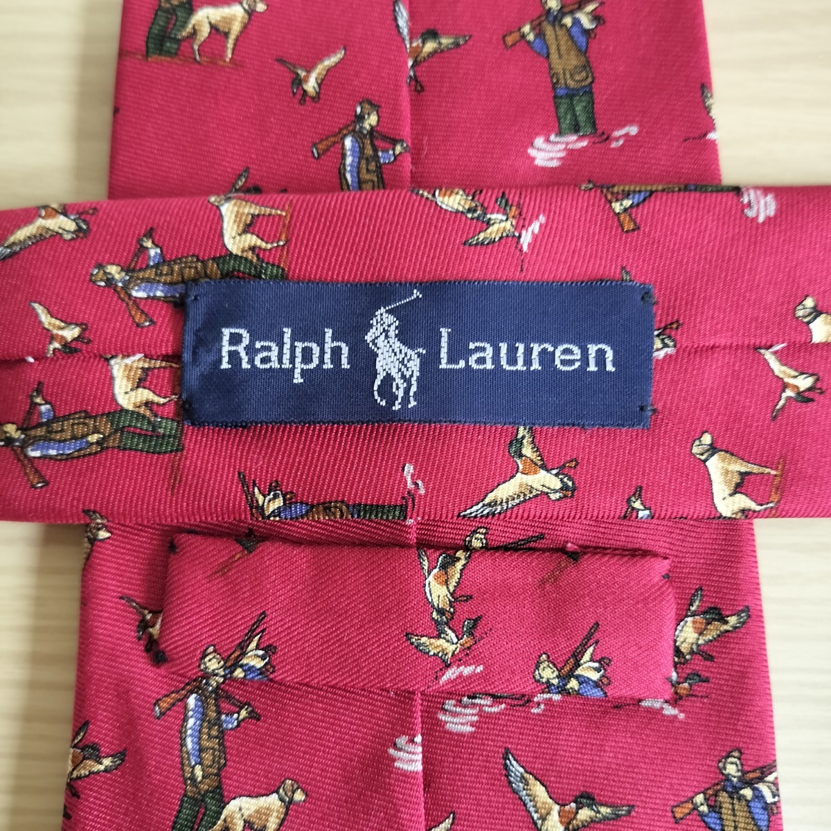 - ラルフローレン(Ralph Lauren)赤人銃犬鳥模様ネクタイ