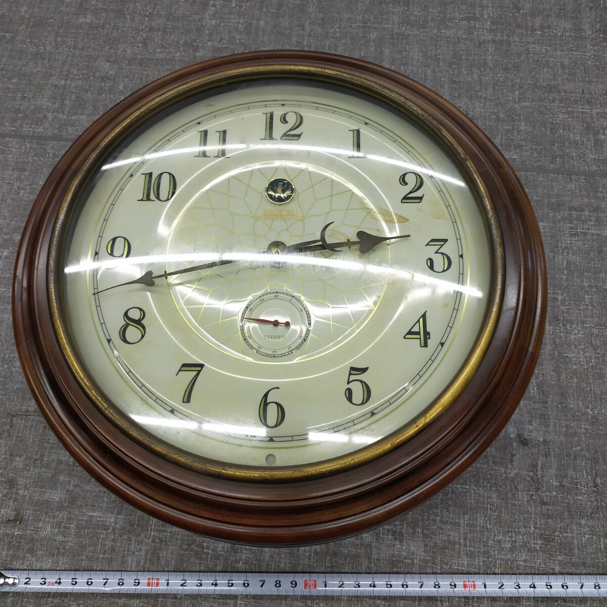 > す3197 壁掛け時計 CITIZEN シチズン KARAKURI カラクリ QUARTZ KC2612 1987年 ウッド スモールセコンド レトロ アンティーク