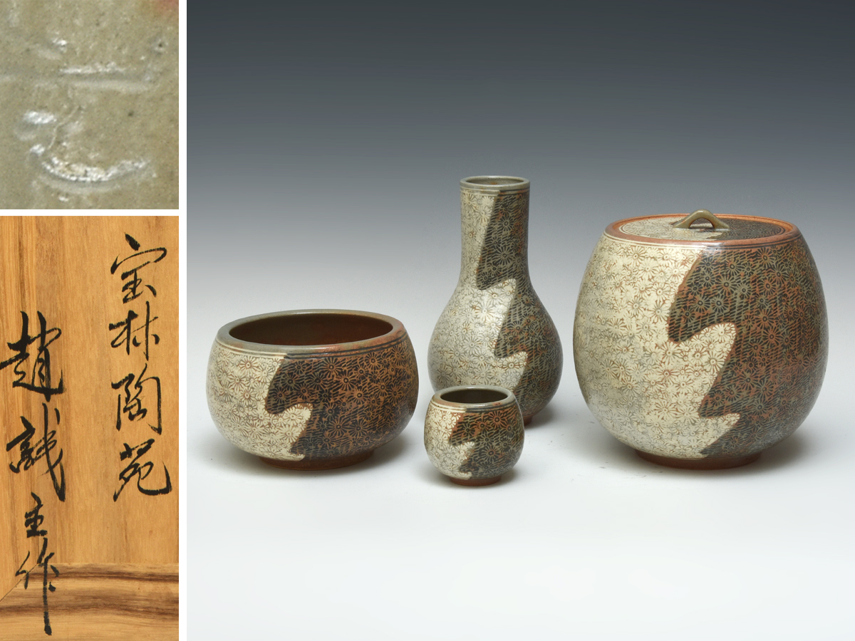 > 宝林陶苑 趙誠主 (造) 象嵌 皆具 一揃 / 水差 建水 杓立 蓋置 / 共箱 茶道具 韓国 高麗 朝鮮美術 陶磁器 u0628t