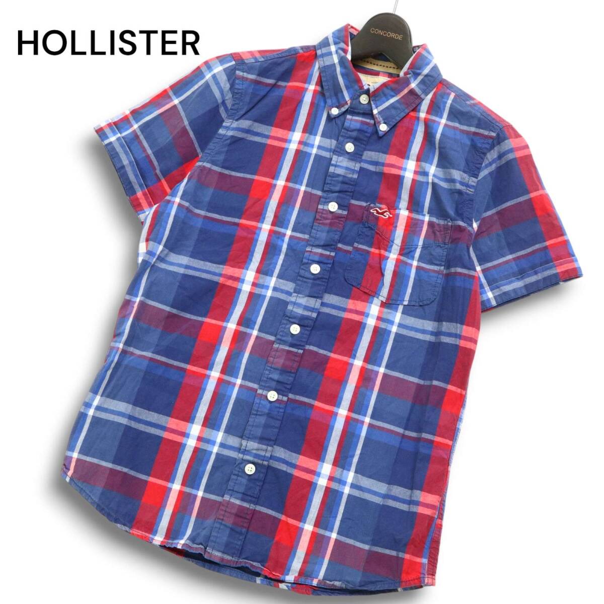 > HOLLISTER ホリスター 春夏 ロゴ刺繍★ チェック 半袖 ボタンダウン シャツ Sz.M メンズ