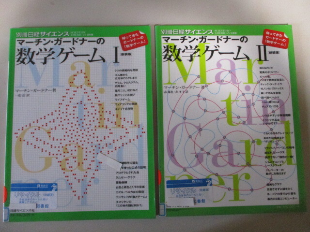 - NH052(図書館除籍本2冊) マーチン・ガードナーの数学ゲーム 1,2 新装版 (別冊日経サイエンス) 日経サイエンス社 (定価4510円)