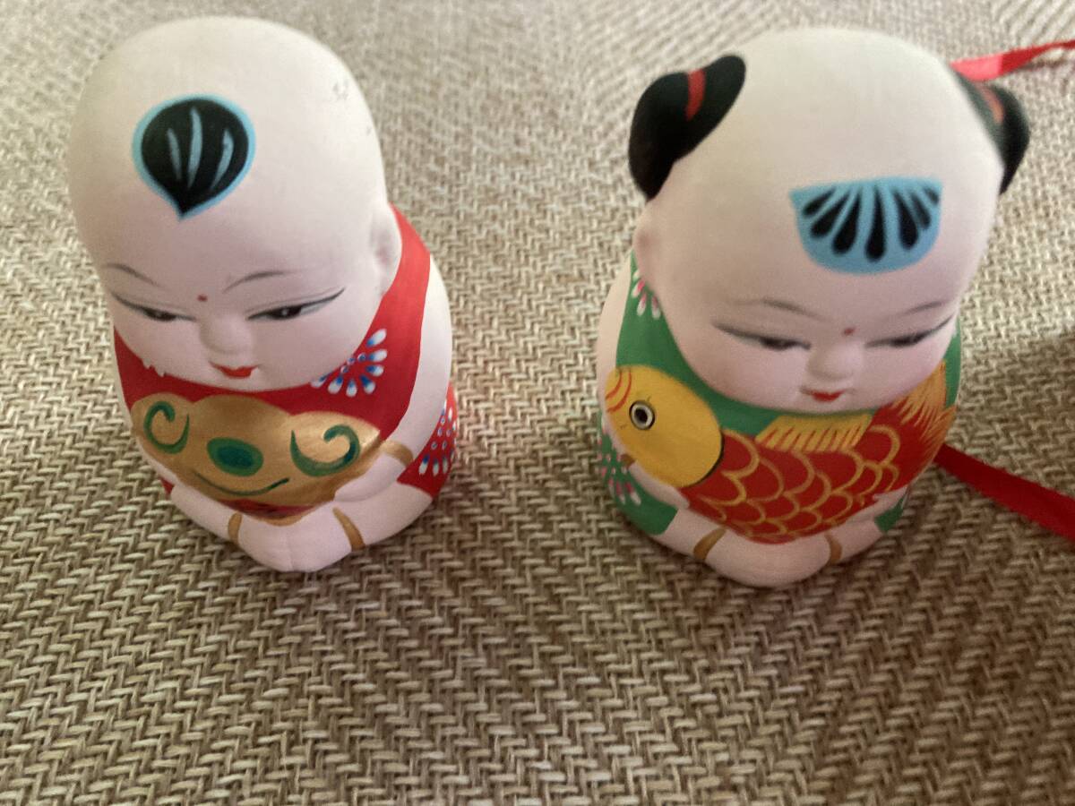 - 中国 泥人形 2体セット 箱あり 箱のひも1本切れ 男の子と女の子 恵山泥人形 泥人形ペア