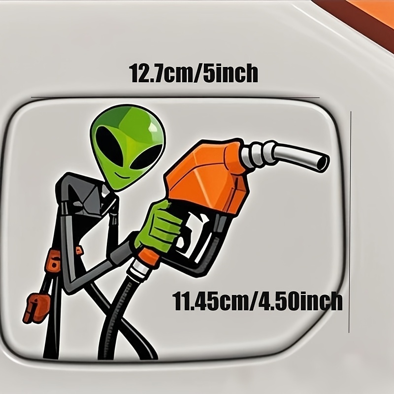 - ステッカー 給油するエイリアン 12.7cm 働く宇宙人 防水 おしゃれ ビニール素材 インテリア 貼り付け シール 車用 バイク用 窓用 t7436