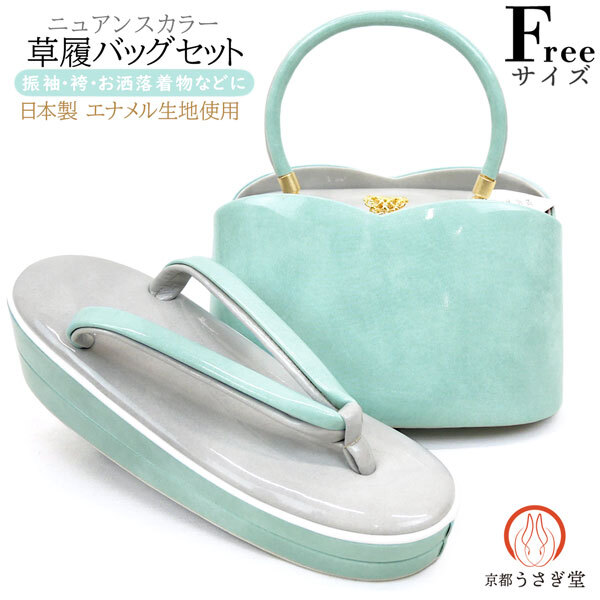 - 【決算セール】フリーサイズ 草履バッグセット 薄水色 グレー くすみカラー zb-003 ニュアンスカラー 振袖 袴 お洒落着物 成人式