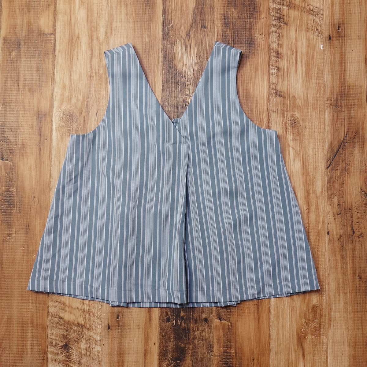 - 美品 ロフ loaf Vネックストライプノースリーブトップス レディース Aライン レイヤード ジレ ONE ブルーグレー系ストライプ LH58
