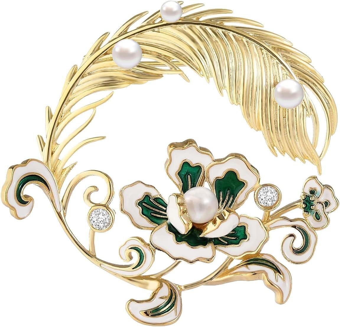 - レディースブローチ エレガントな牡丹の花の孔雀の羽のブローチ コサージュ アクセサリーの女性のピン エレガントな装飾