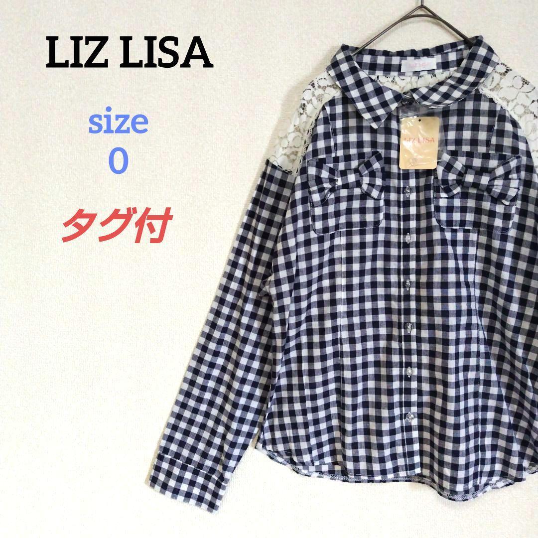 > LIZ LISA リズリサ 肩レースシャツ ギンガムチェック リボンポケット 地雷系量産型 ブルー 青 0 フリーサイズ ロリータ 長袖
