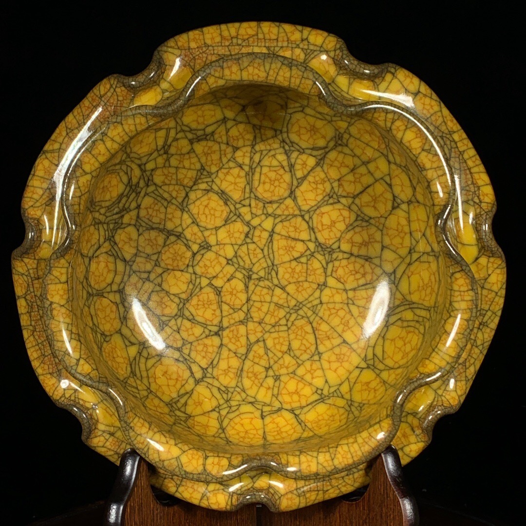 - ▽鴻▽ 宋 古陶瓷品 官窯 冰裂紋 花口洗 陶藝 古賞物 古董品 時代物 稀少珍品 中国古玩 中国古美術