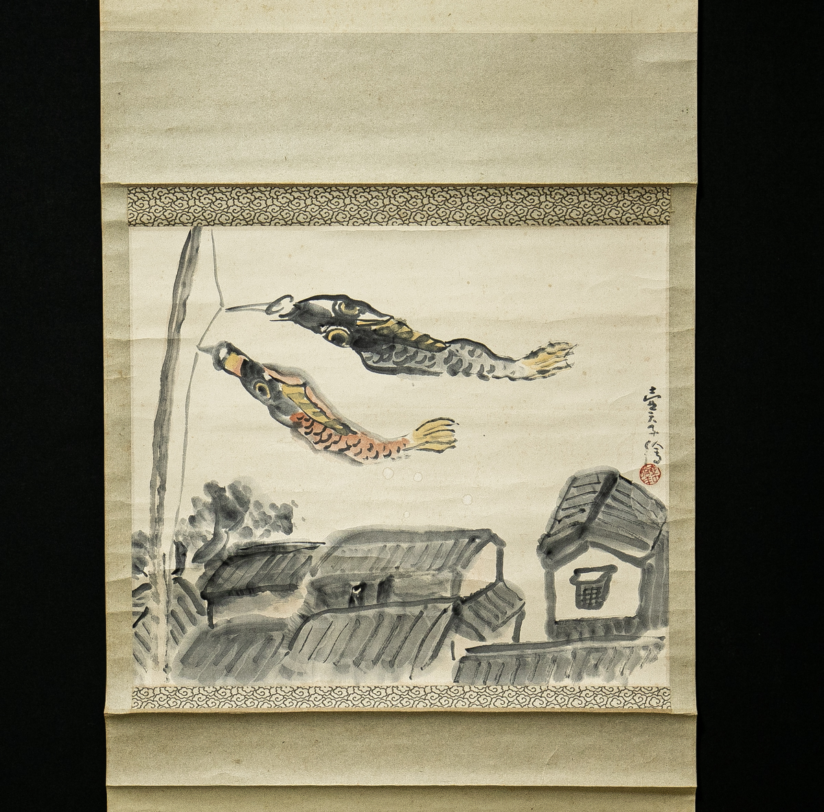 - 3141【真作】 村上壺天子 鯉幟図 共箱 俳人 今治の人 S