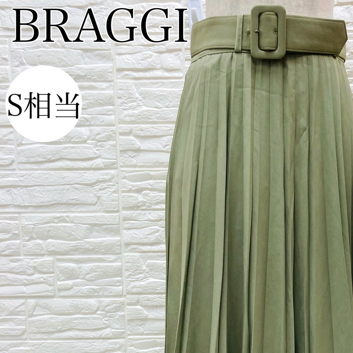 > 【AA3972】 BRAGGI ブラッジィ Sサイズ相当 ボトムス スカート ベルト付き ロング丈 プリーツ 裏地付き サイドファスナー レディース