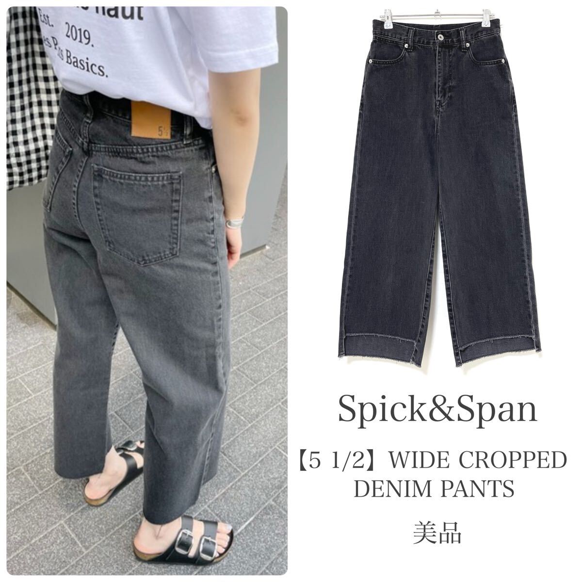 > spick&span【美品】5 1/2 ワイドクロップドデニムパンツ ブラック ジーンズ スピック&スパン