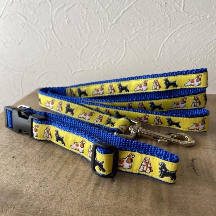 - アメリカンコッカースパニエル・イエロー/ブルー 首輪&リードのセット アメリカ製