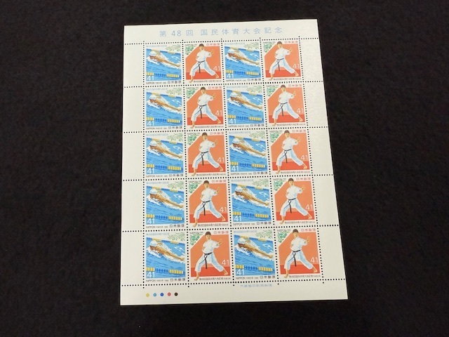 - 92、日本切手 第48回 国民体育大会 41円×20枚 シート 未使用