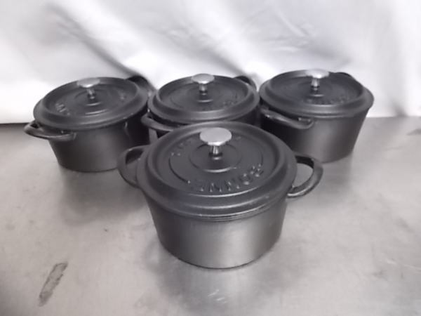 - ボン・ボネール ココット 15cm ブラック 鍋4個セット 黒色 220×165×110 中古厨房 /A-13