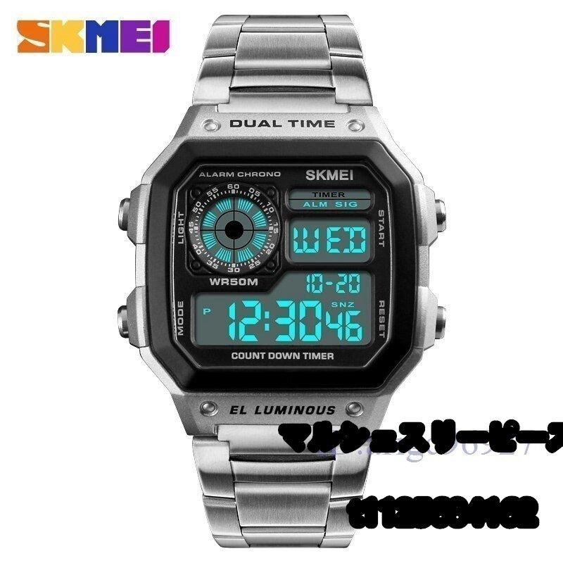 > 新品防水時計 ステンレス 鋼ファッション デジタル 腕時計 SKMEI メンズスポーツウォッチ カウントダウン