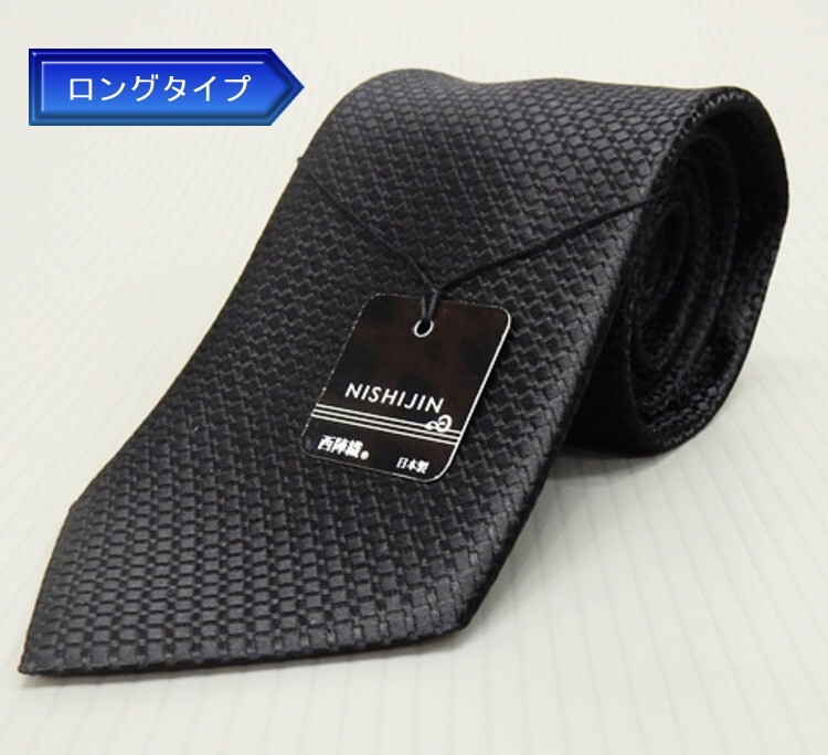 - 西陣織 ロングタイ/フォーマルネクタイ 黒 マイクロチェック シルク100% 日本製 礼装 告別式・葬式 ポスト投函便送料無料 nj07-BK-LONG