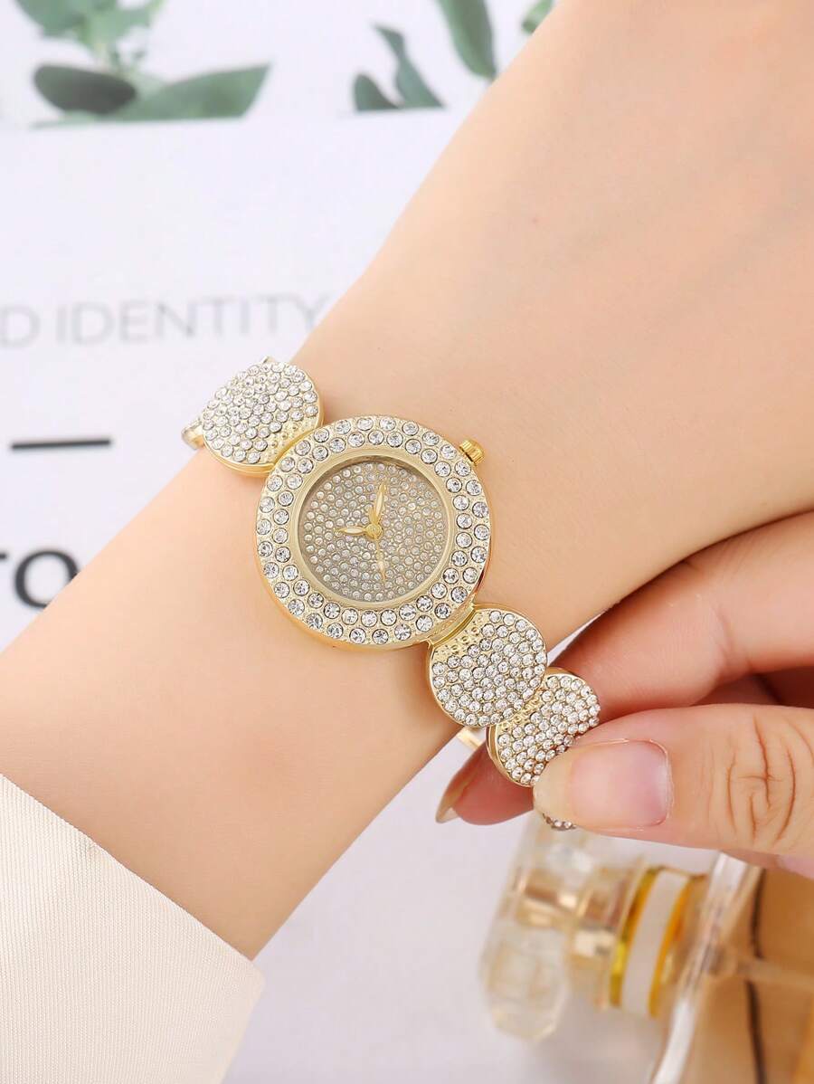 > 腕時計 レディース クォーツ 女性用ラインストーン ゴールドウォッチ カジュアルラグジュアリー レディース ファッションブレスレッ