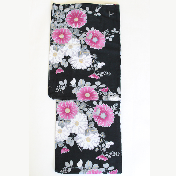 - 女性用 仕立て上がり 浴衣 プレタ 綿 変り織り ゆかた レディース 黒地 花 高級 女性浴衣 レディース浴衣 単品