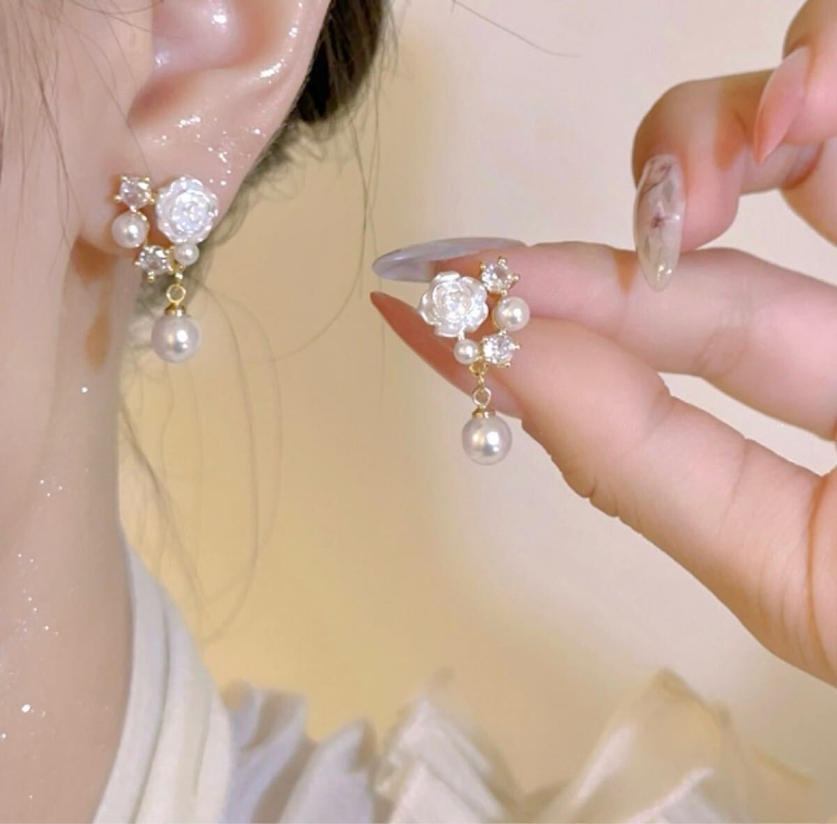 - 新品 未使用 レディース ピアス パール ゴールド ラインストーン バラ 薔薇 結婚式 かわいい おしゃれ フォーマル