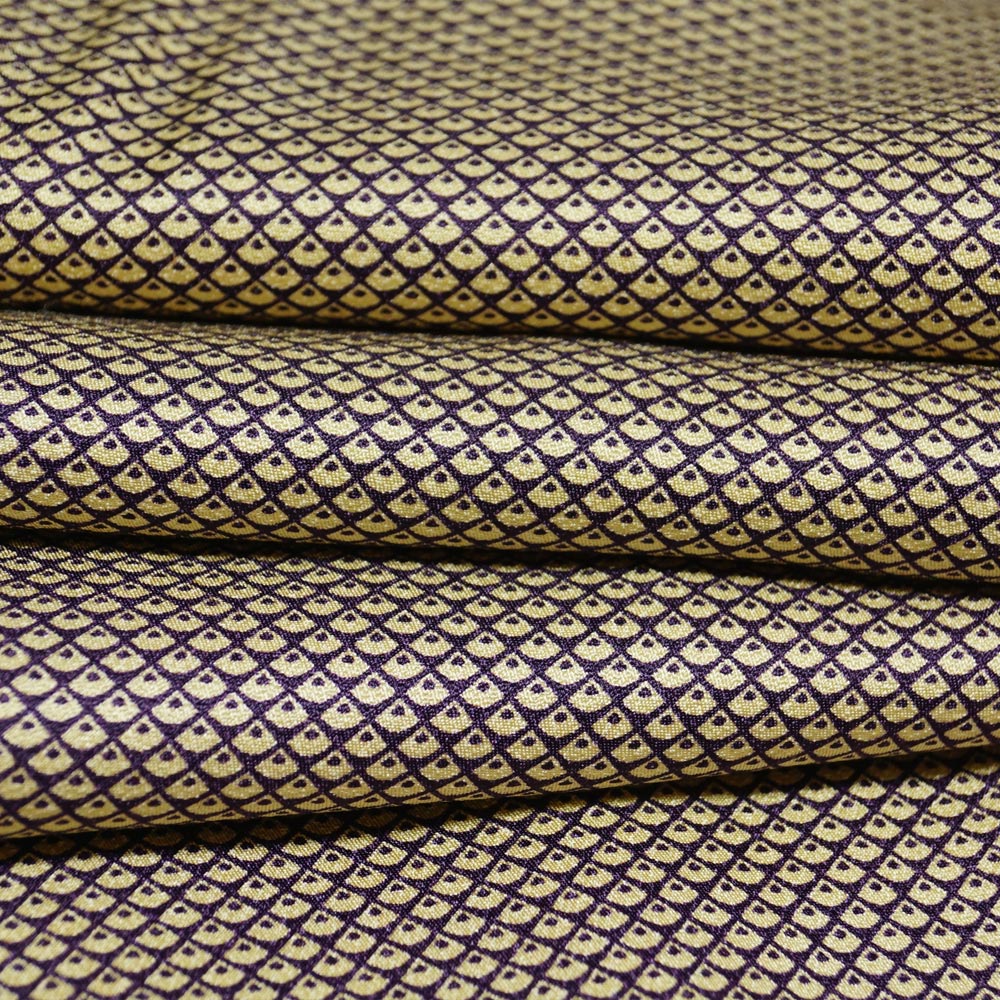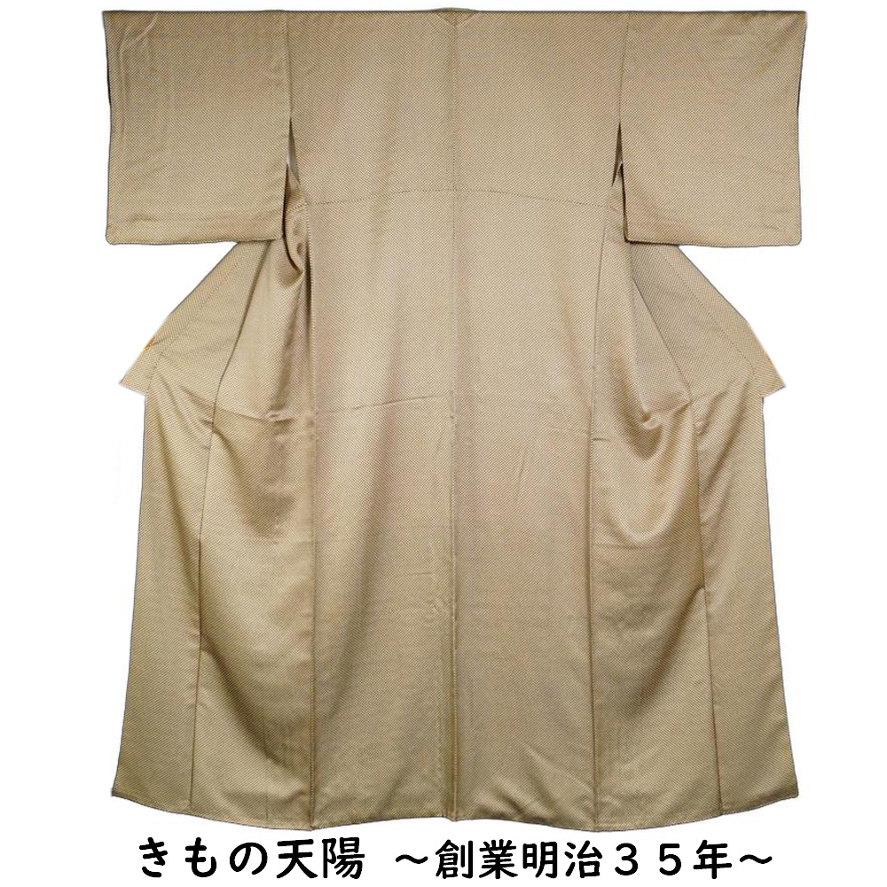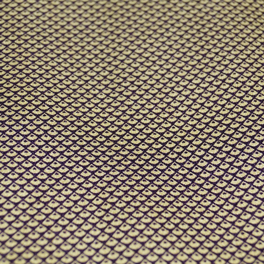 - 小紋 染め匹田模様 生成り色・本紫色系 綸子 裄長・Lサイズ 中古 リサイクル小紋 リサイクル 着物 女性和服 着物 京都きもの天陽