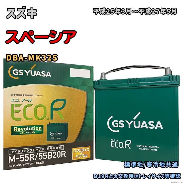 > バッテリー GSユアサ ER-M-55R/55B20R スズキ スペーシア DBA-MK32S 平成25年3月~平成27年5月 アイドリングストップ車 M-42Rタイプ 371