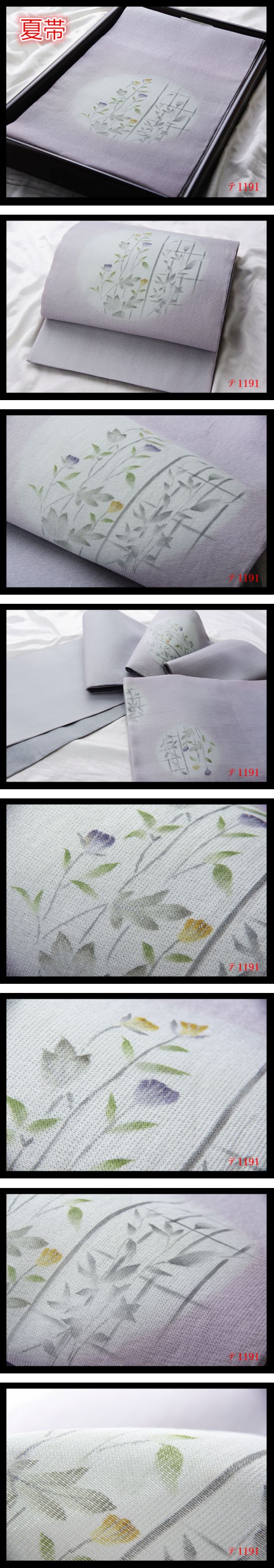 - 蔵【テ1191】西陣逸品 夏帯 手描き 白藤色地 透かし 気品豊かに 夏物 正絹太鼓柄高級美術袋帯 ◇検◇簪着物名古屋帯和装小物帯締め