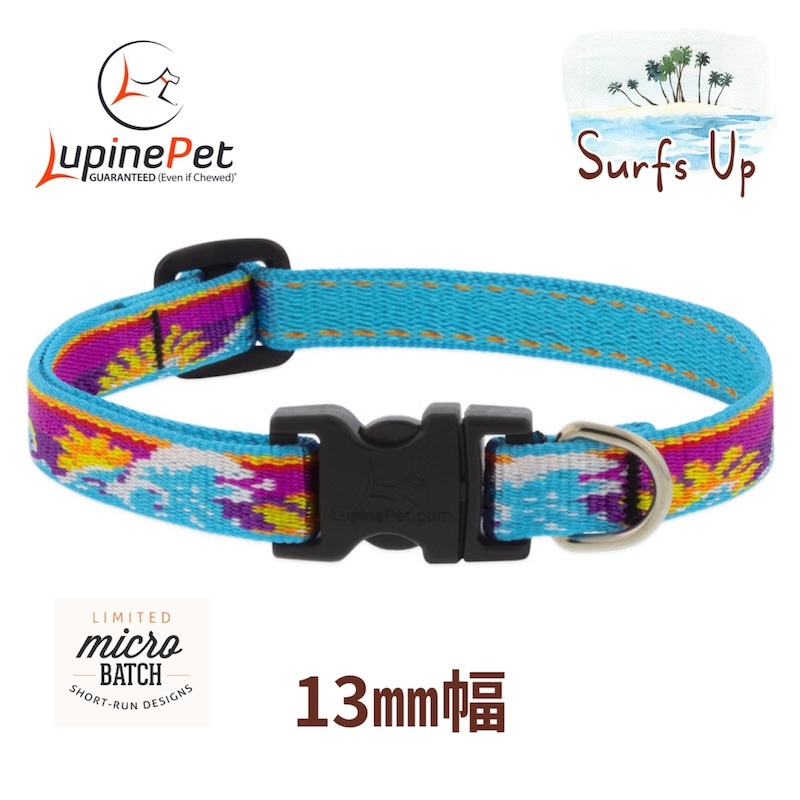 - サーフィン柄 小型犬向けワンタッチ首輪 13mm幅 XSサイズ 15-22cm LUPINE アメリカ製 軽量 丈夫 ルパイン