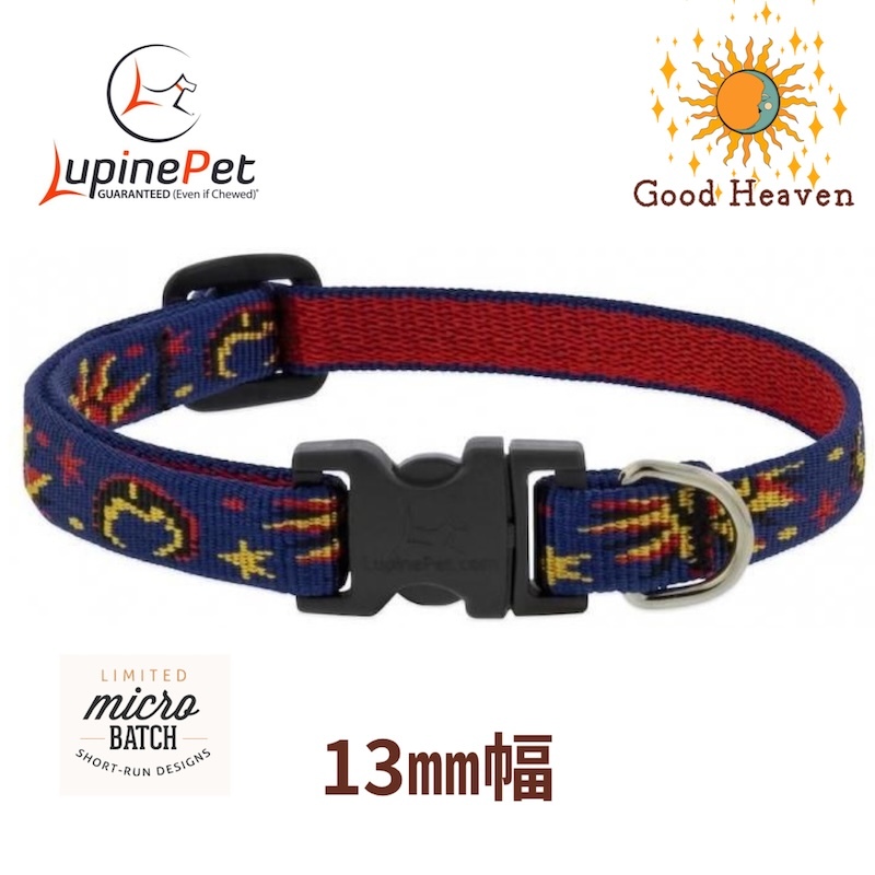 - グッドヘブン柄 小型犬向けワンタッチ首輪 13mm幅 Sサイズ 20-30cm LUPINE アメリカ製 軽量 丈夫 ルパイン