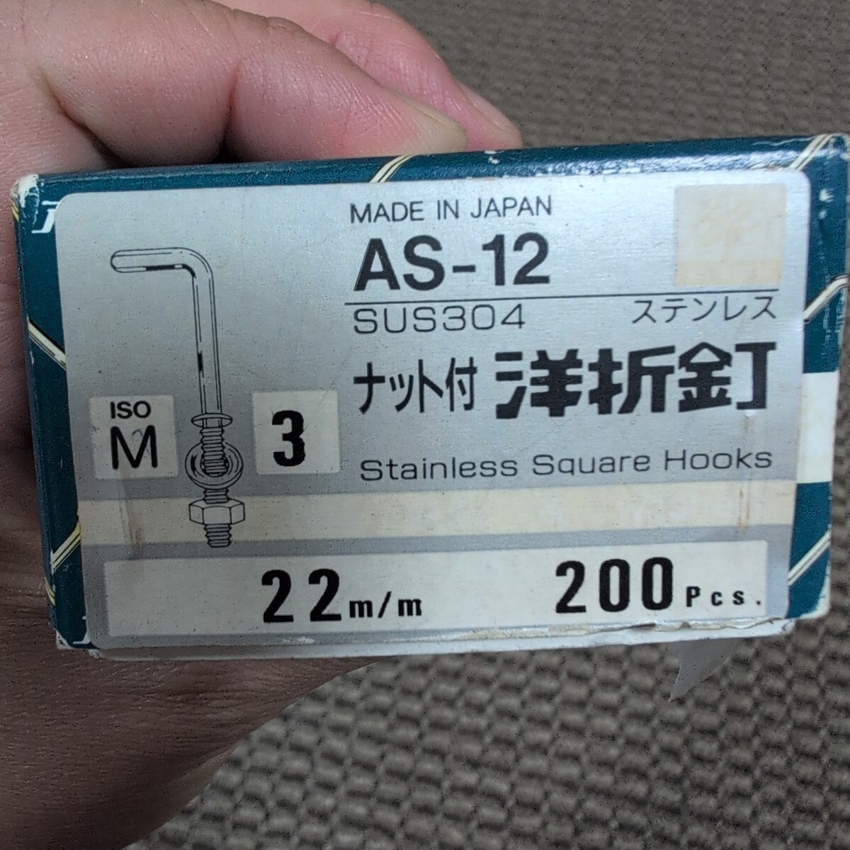 - ジャンク品/長期保管品/アンテナ印/AS12-22/洋折釘/ステンレス/サイズM3/全長L37×14mm/厚T2.6mm/ネジ長さ16mm/L型/15本入り