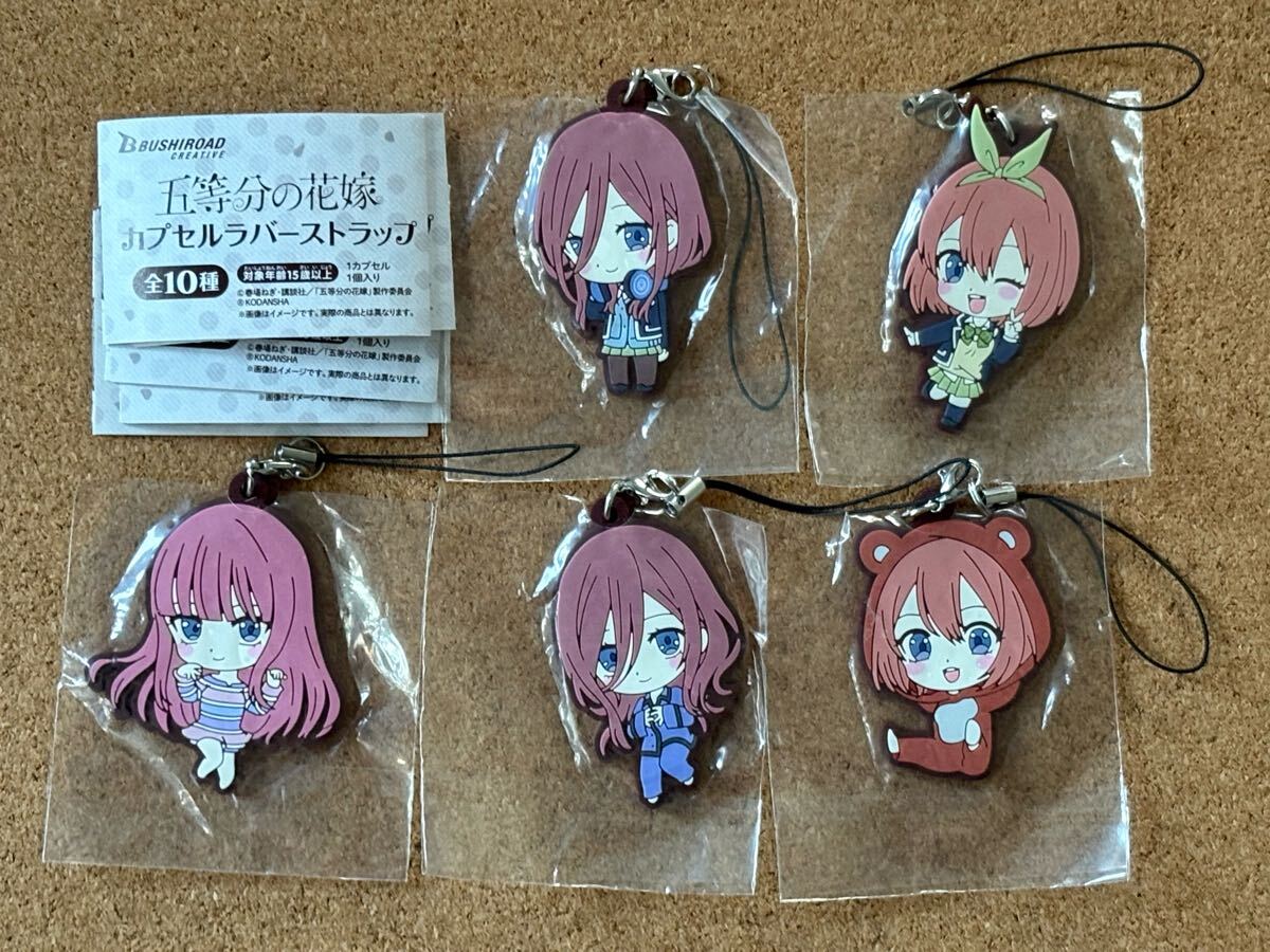 - 五等分の花嫁 カプセルラバーストラップ 二乃B、三玖A.B、四葉A.Bの5種SET