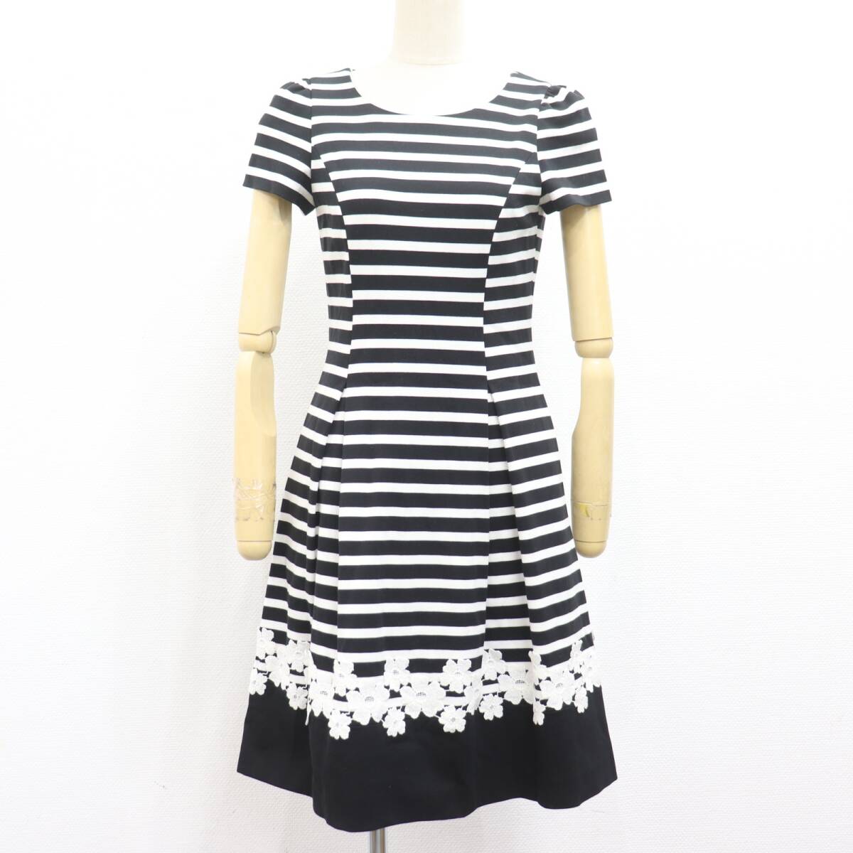 - ITH9KF92N4JK 即決 本物 M's gracy エムズグレイシー ボーダー 花柄 ワンピース スカート ブラック 黒 ホワイト 白 レディース サイズ 38