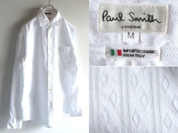 - 希少 90sビンテージ Paul Smith LONDON ポールスミス ロンドン イタリア製生地使用 ジャガード コットン ドレスシャツ M 白 ネコポス対応