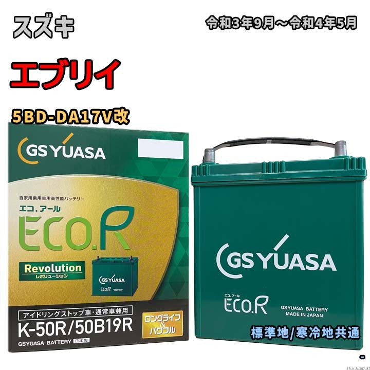 > バッテリー GSユアサ ER-K-50R/50B19R スズキ エブリイ 5BD-DA17V改 令和3年9月~令和4年5月 車いす移動車 充電制御車 K-42Rタイプ 307