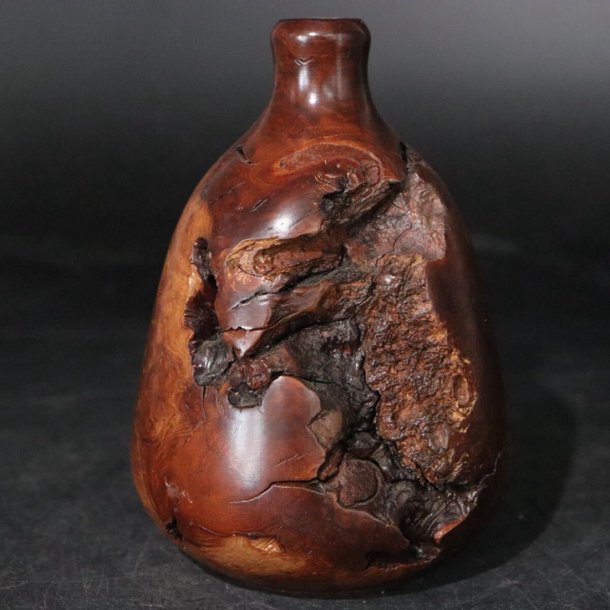 - 時代 玉杢 山水図 浮彫 木製 徳利 / 木工芸 茶器 酒器 置物 煎茶道具 .B767