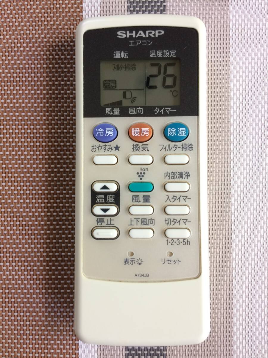 > 薄い黄ばみあり★送料無料★SHARP★シャープ★純正★エアコン用リモコン★A734JB★中古★動作品★返金保証あり★