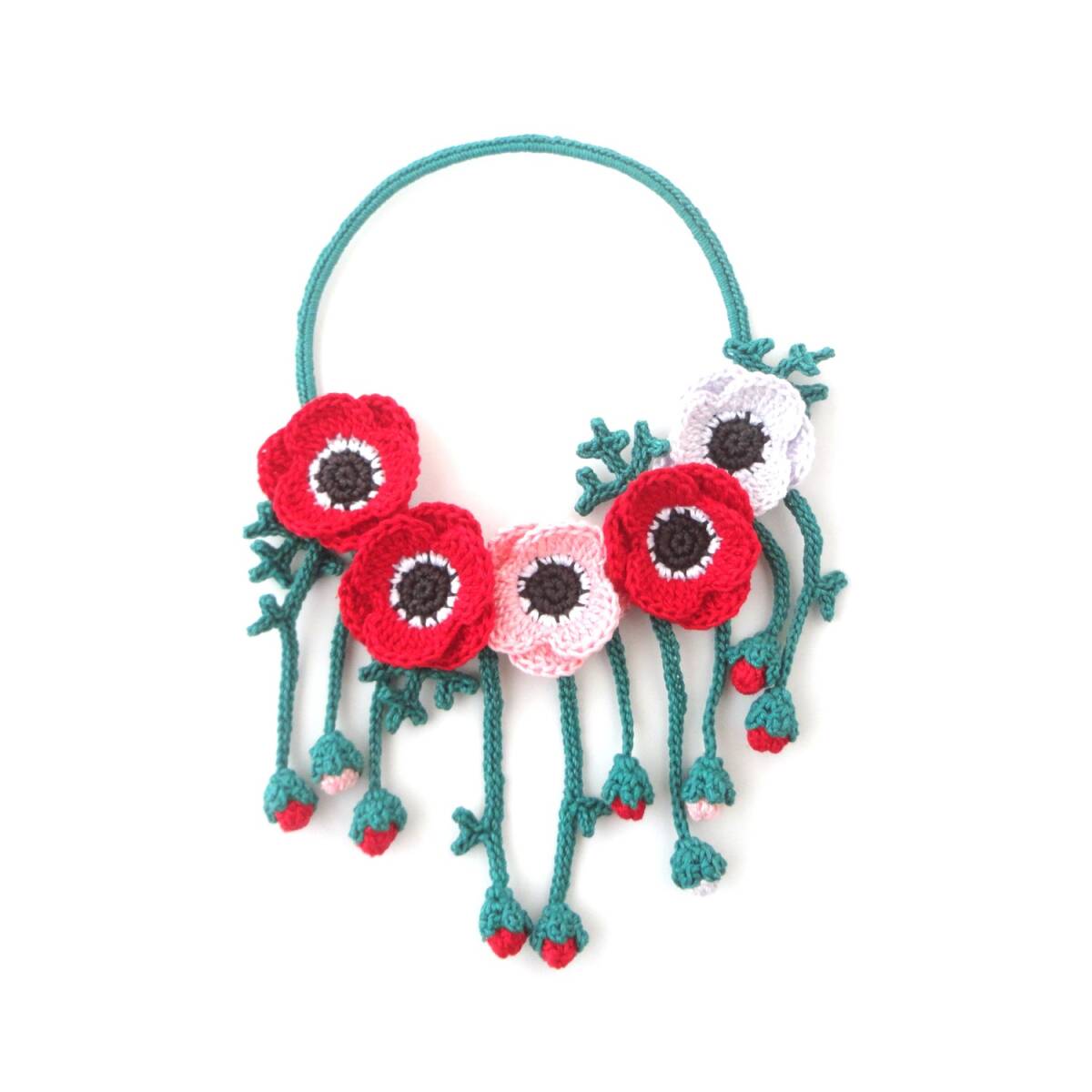 - 華やかなアネモネのリース*ワイヤーリース*RD*レース編み*ハンドメイド*b860