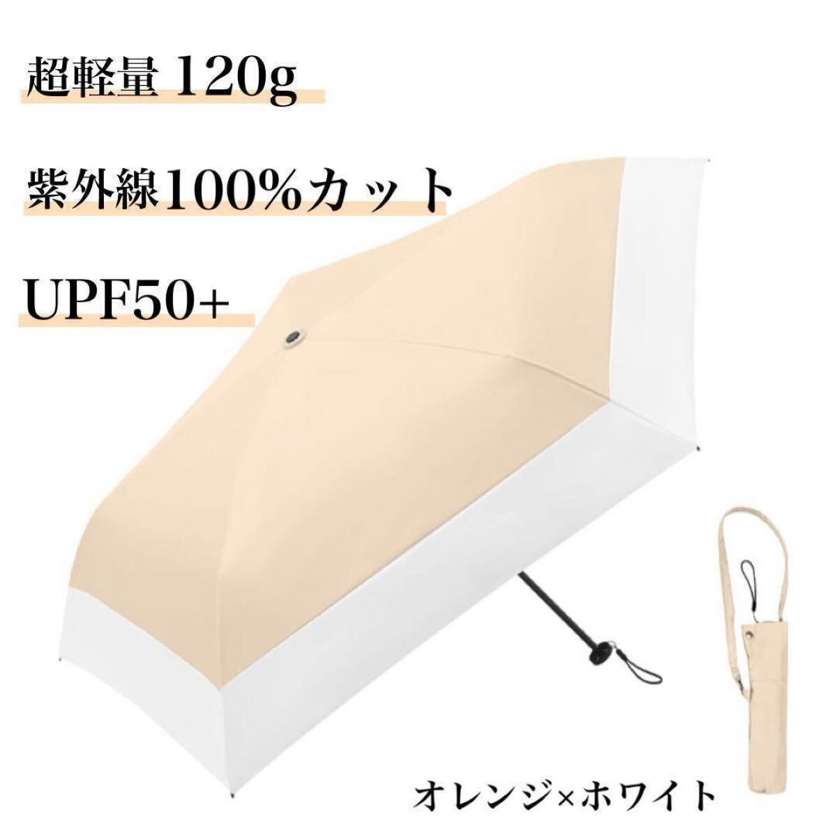 - 【最終価格】日傘 折り畳み傘 軽量 紫外線100%カット 遮光100% 晴雨兼用 超軽量 コンパクト オレンジ バイカラー