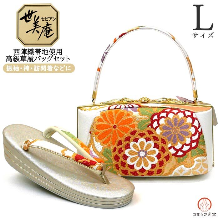 - Lサイズ 世美庵 草履バッグセット zb-008 日本製 西陣織 帯地 振袖 訪問着 成人式 ゴールド 金