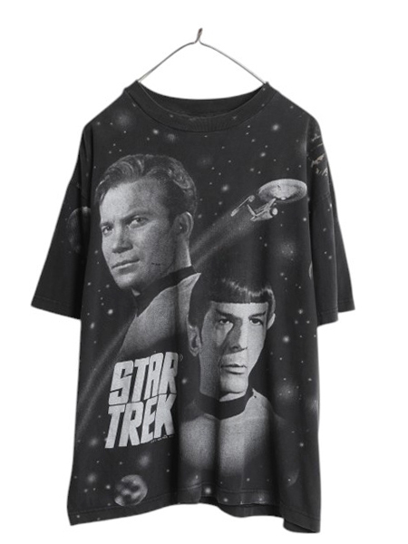 > 90s ★ スタートレック オールオーバー プリント Tシャツ メンズ XL / オフィシャル SF ムービー 当時物 キャラクター シングルステッチ 黒