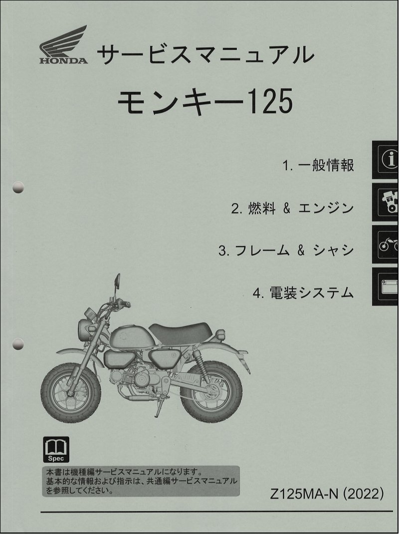 - モンキー125/Z125MA(8BJ-JB03) ホンダ サービスマニュアル 整備書(機種編) メンテナンス 純正品 受注生産品 新品 60K0F50